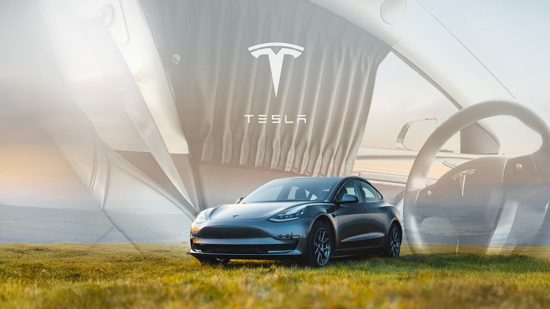 特斯拉專屬無窗框設計,靜音順滑,原抽紗布料經久不褪色