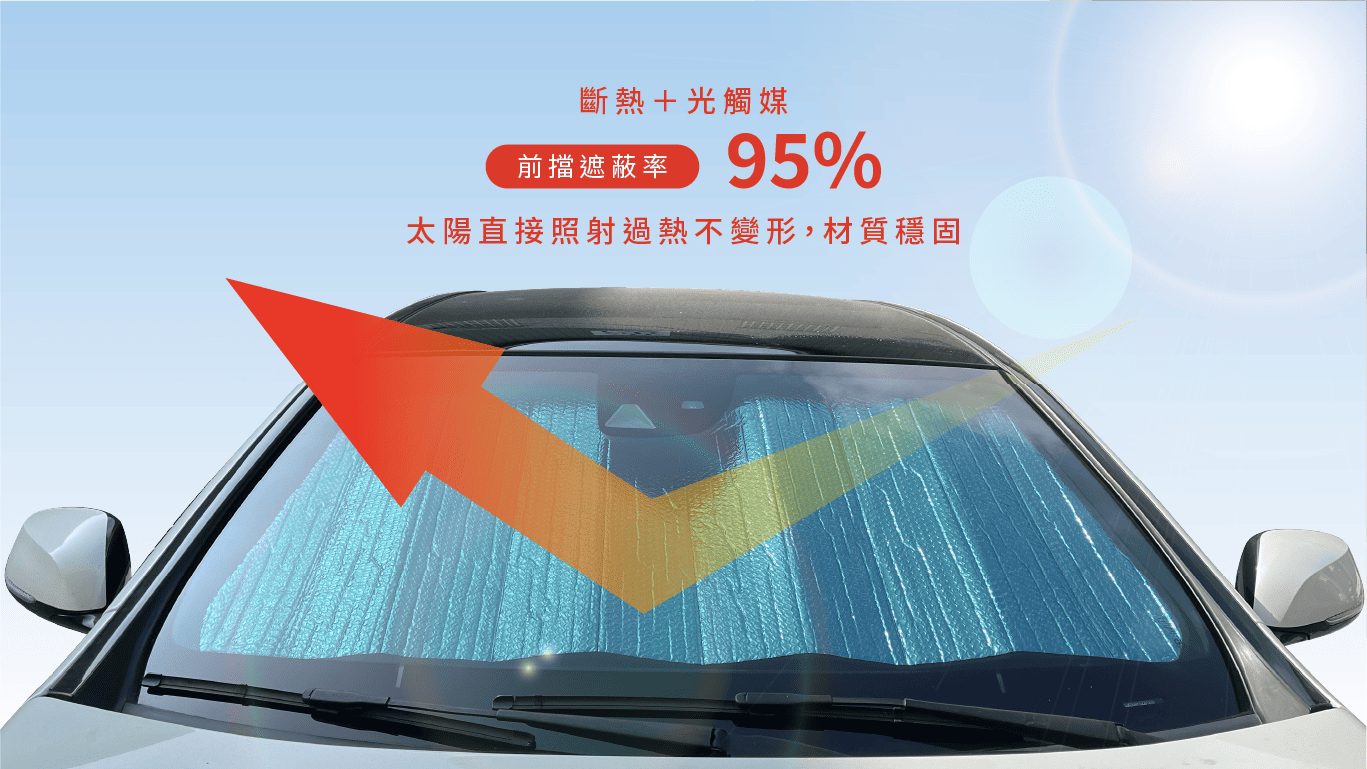 雙層氣泡遮陽板搭配專利鋼圈,結構挺立不塌陷,長時間曝曬也不變形。